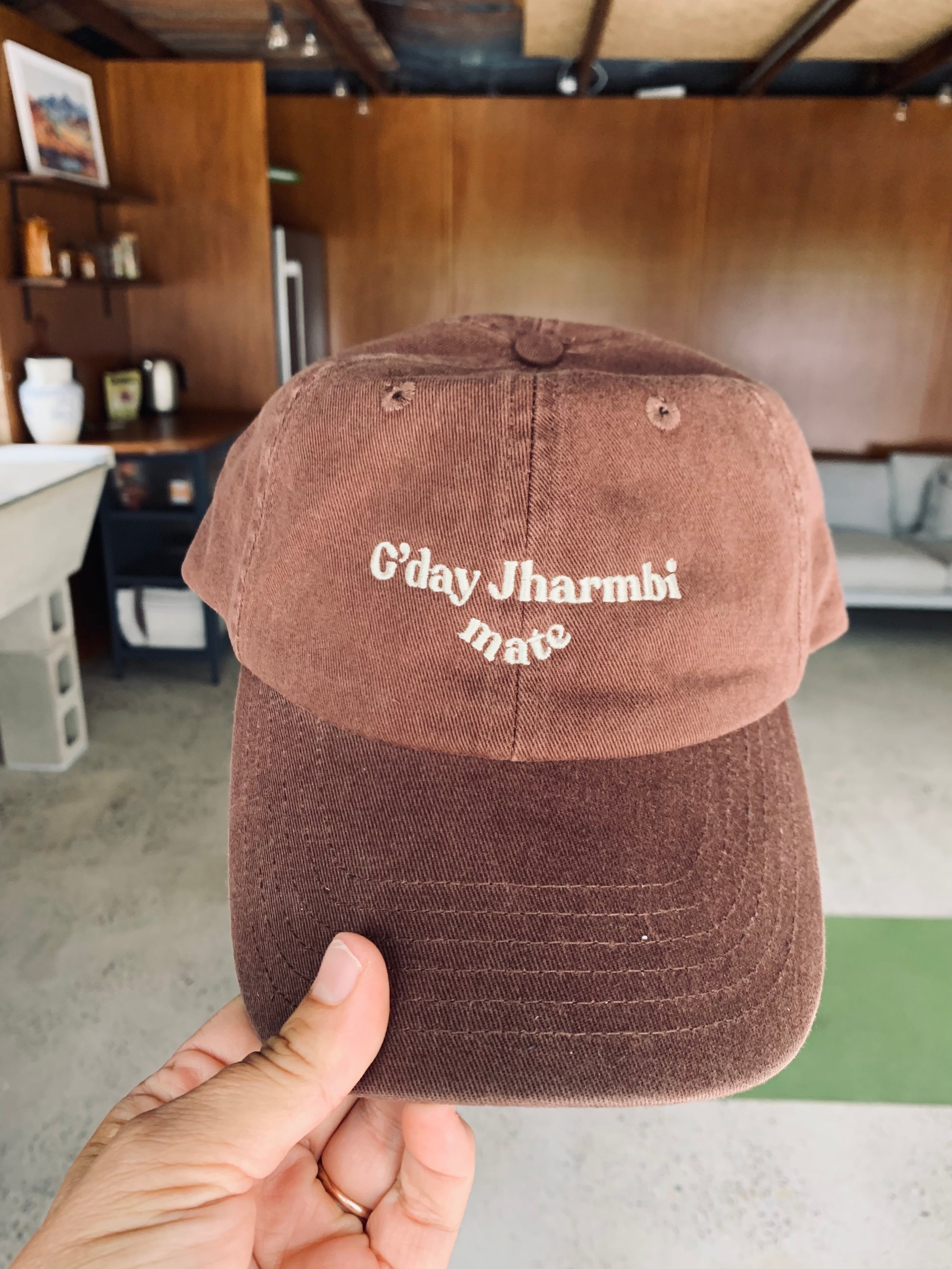 Jharmbi is a word shared across Kulin Nation language groups, meaning friend or mate. So when you put this cap on, you're not just saying hello you're saying welcome "friend".